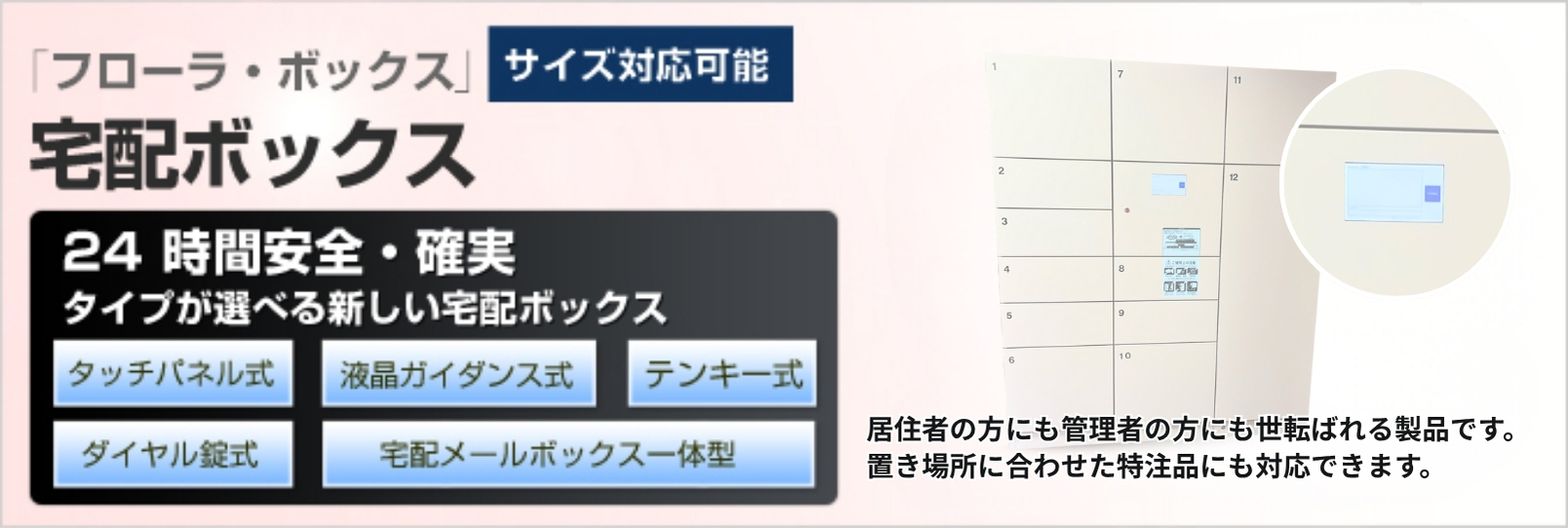 東洋フローラの宅配ボックスは、現在一般的に使用されている宅配ボックスのほとんどの機種を網羅しておりますので、各仕様に対応できます。他社同等品として、各種仕様に対応し低価格にてご提供。標準サイズはW500×D600×H1,800(業界標準)ですが、特殊寸法も承りますので、現状施工に対応できます。